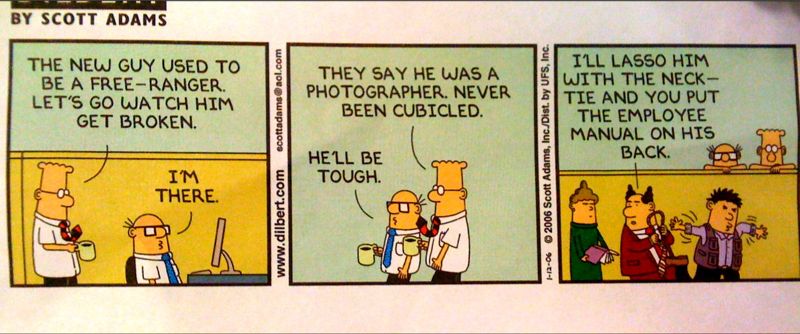 An anonymous co-worker left this cartoon on my desk and it brought back such fond memories of being free and creative, carrying a camera bag to work every day instead if a laptop bag.