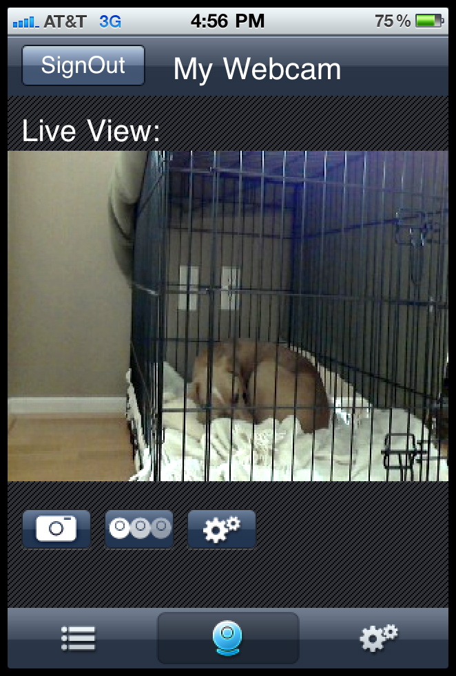 So Tuesday night I stopped by Radio Shack to pick up a few items I thought might make the work day a little less stressful for Donna (Buddy, I think, is fine.) First, a web cam and second, a phone with a speaker-phone answering-machine. Long story short, Donna can now watch Buddy all day long, from her iPhone or iPad, and even call him! The phone’s ringer is set to silent so all Buddy hears is Donna talking to him. The first time around, he tilted his head a little as if confused.