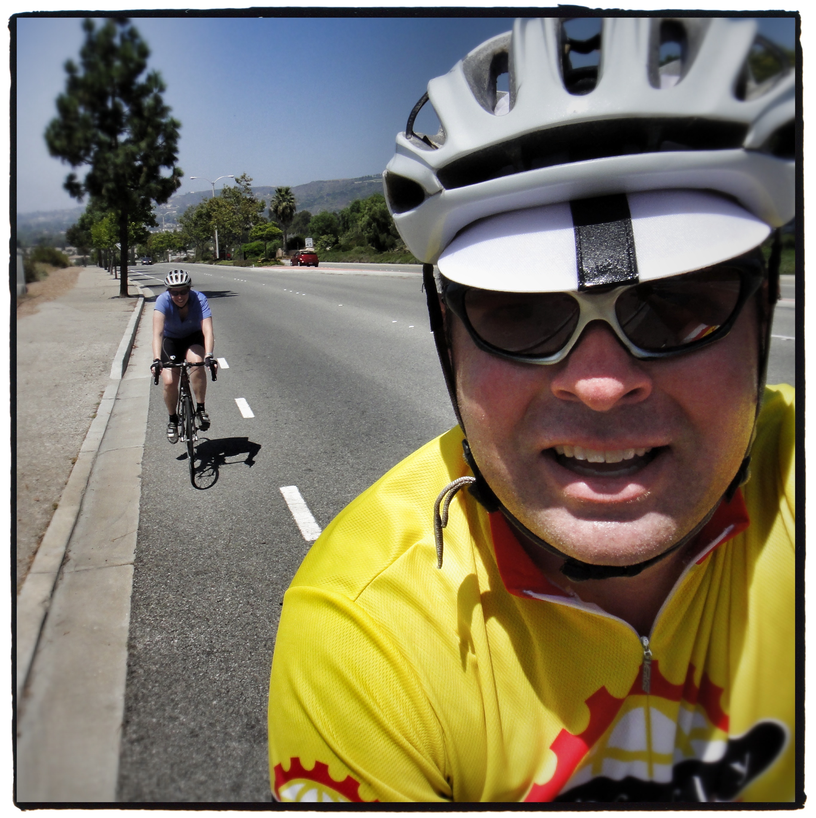 Today started (once Donna had a few mugs of coffee) with a relatively short road ride. By time we were heading out, the marine layer had lifted and we had some beautiful blue skies to enjoy.