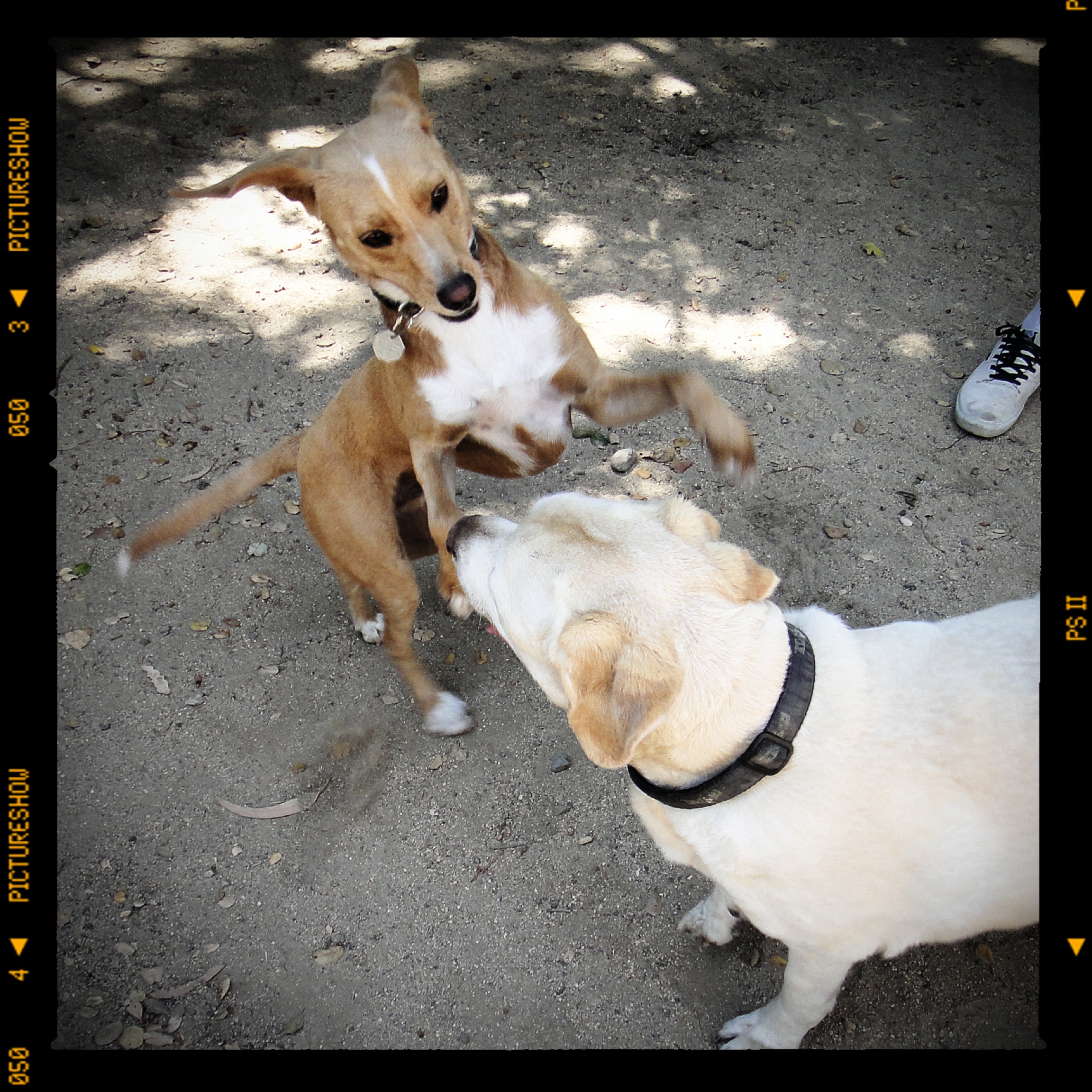 Of the dozen dogs at the dog park today, Buddy found one or two that he liked to wrestle with.