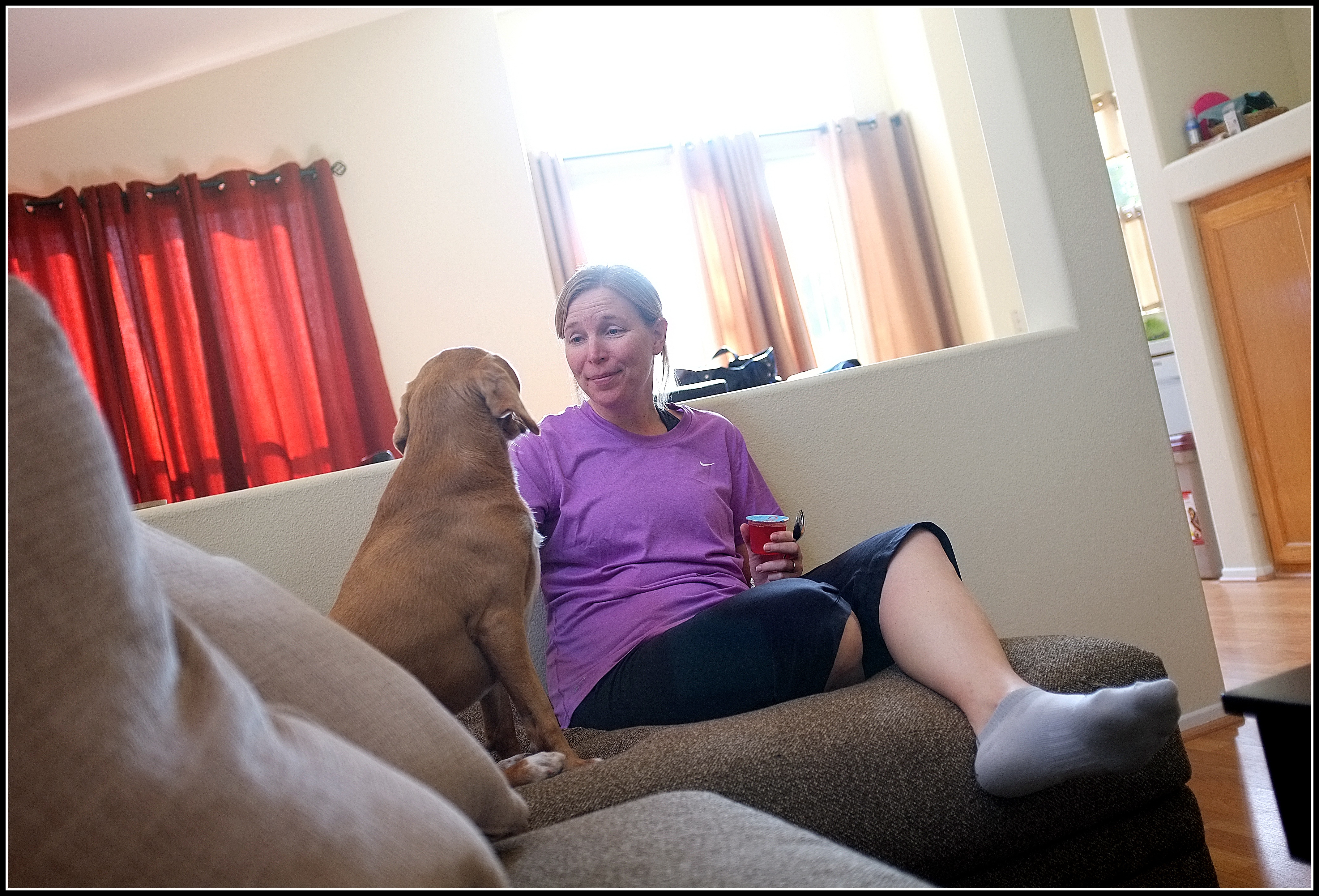 Since we didn’t have time for a hike, I decided I’d at least like to get out for a run. I also know I don’t run very well with food in my stomach, so while we were waiting for lunch to settle, Donna made sure none of the sofa cushions floated away. She’s really good at it.