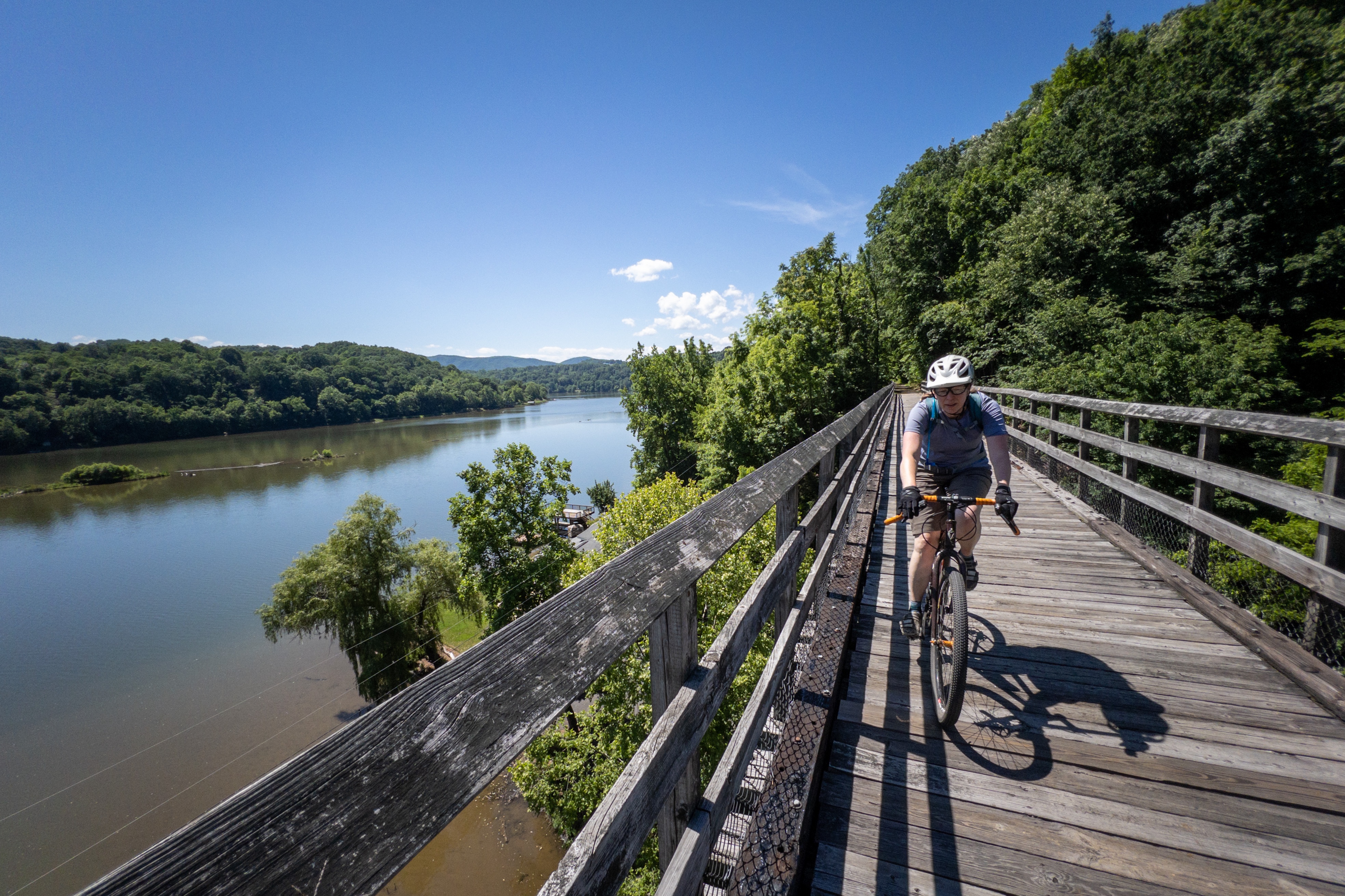 We had a beautiful ride along the New River today. Along the way we came across a fox that darted across the trail as we rode by, a deer & her fawn nestled in tall grasses, beavers working on their dam, a mole, a chipmunk, Canadian geese, and a group of four ducks that appeared to be going for a walk along the path.